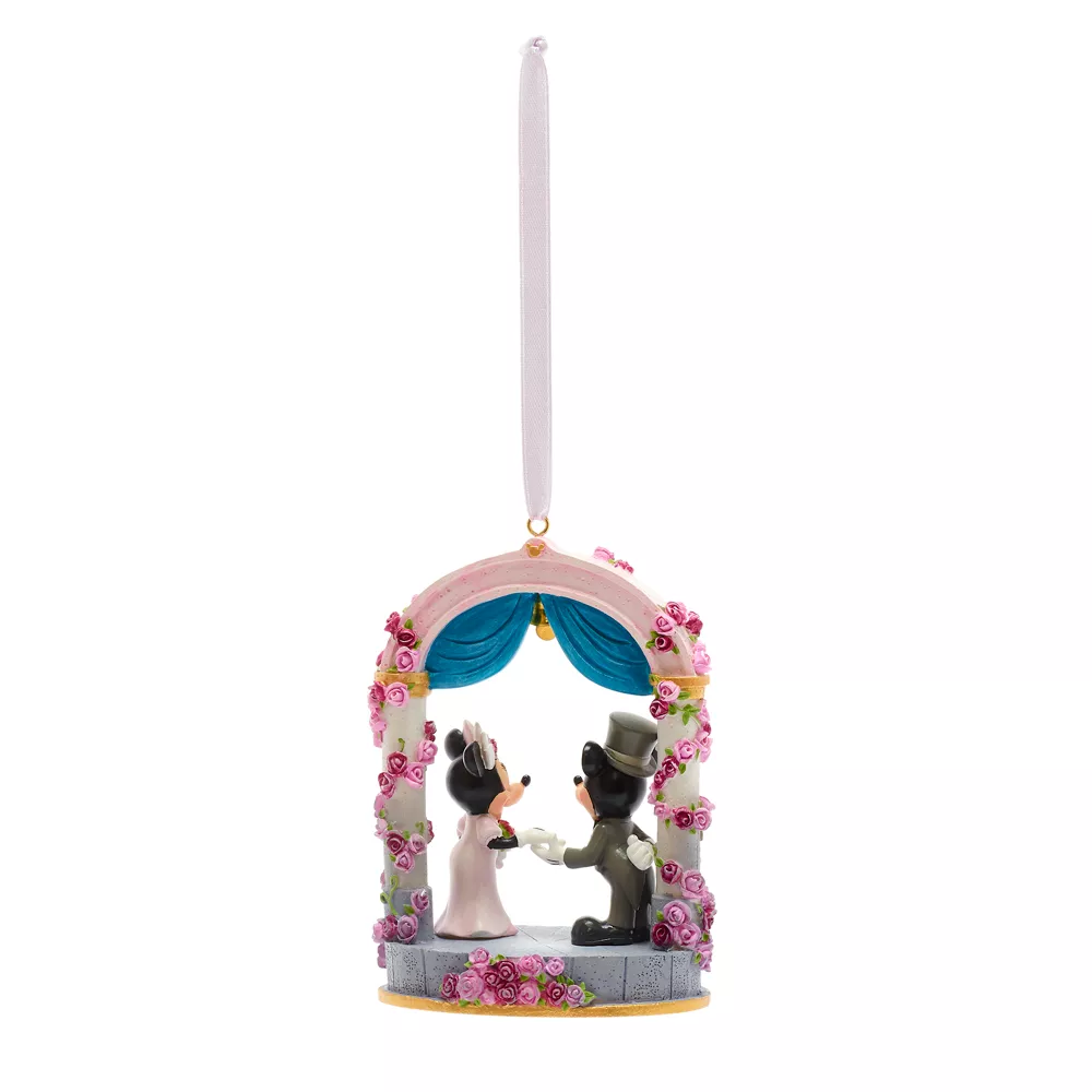 Envie d’un peu de romantisme ? Délicatement sculptée, cette décoration marque le plus beau jour de la vie de Mickey et Minnie.