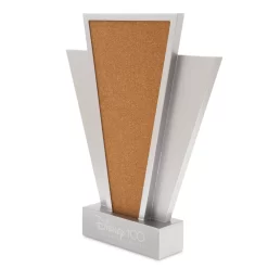 Les fans de Disney peuvent exposer leur collection de pin’s souvenirs effet platine avec ce charmant présentoir en liège et son socle Disney100.